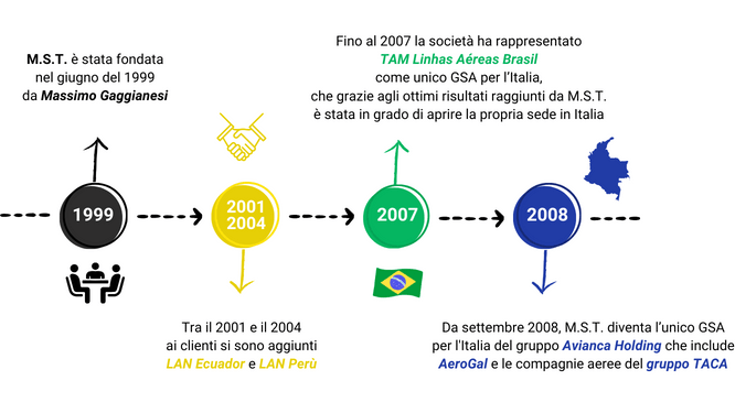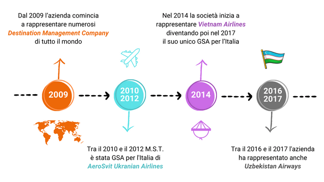 Fondata nel 1999 da Massimo Gaggianesi, la nostra azienda Marketing Servicing and Trading srl si occupa di rappresentanze turistiche, ed è specializzata in particolare nei servizi offerti a compagnie aeree e Destination Management Company (DMCs).